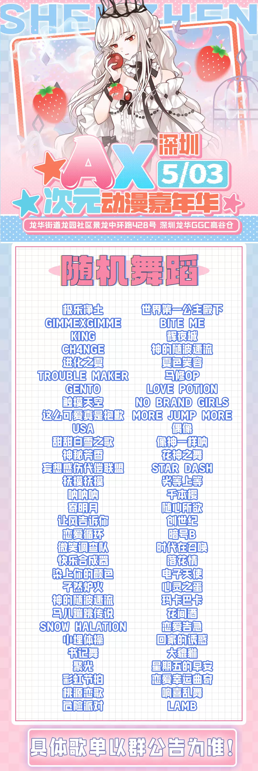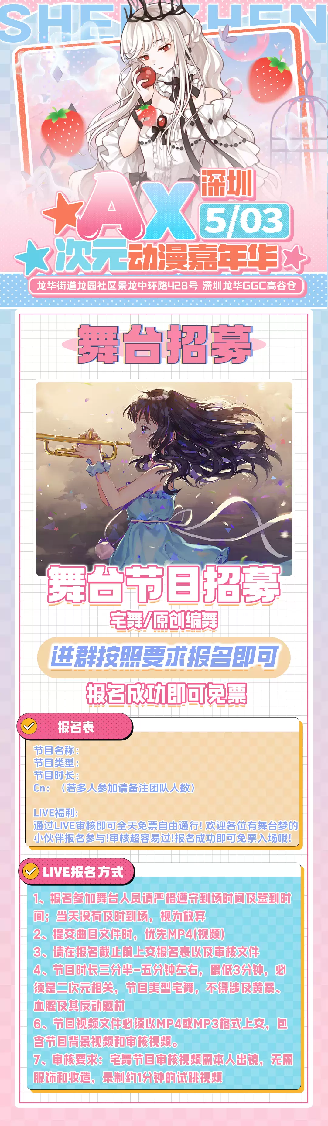2026深圳ax次元动漫嘉年华将于2026年5月3日在深圳龙华GGC高谷仓上演,下面小编为大家详细介绍一下具体的深圳ax次元动漫嘉年华门票价格、时间、地点及演出详情。