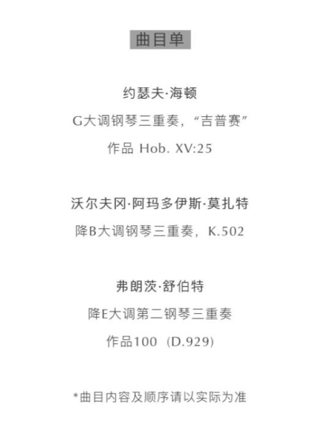 再次提醒,杭州吕思清、秦立巍、陈萨三重奏音乐会等你入座聆听。