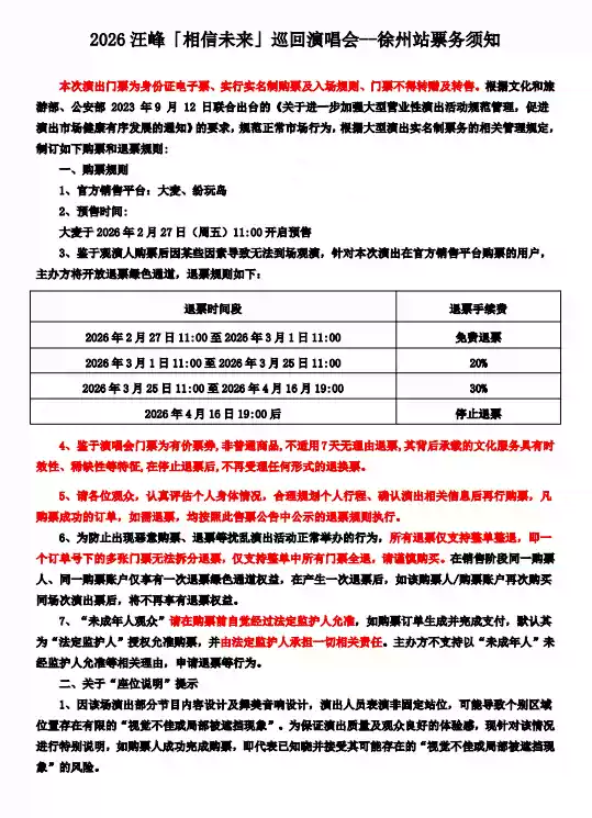 2026汪峰徐州演唱会(时间+地点+票价)一览