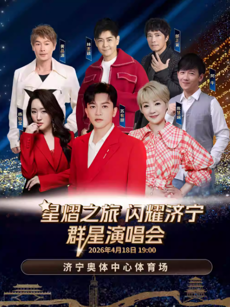 星熠之旅闪耀济宁群星演唱会定档2026年4月18日周六19:00,济宁奥体中心体育场,门票价格同步公开,期待与你相遇。