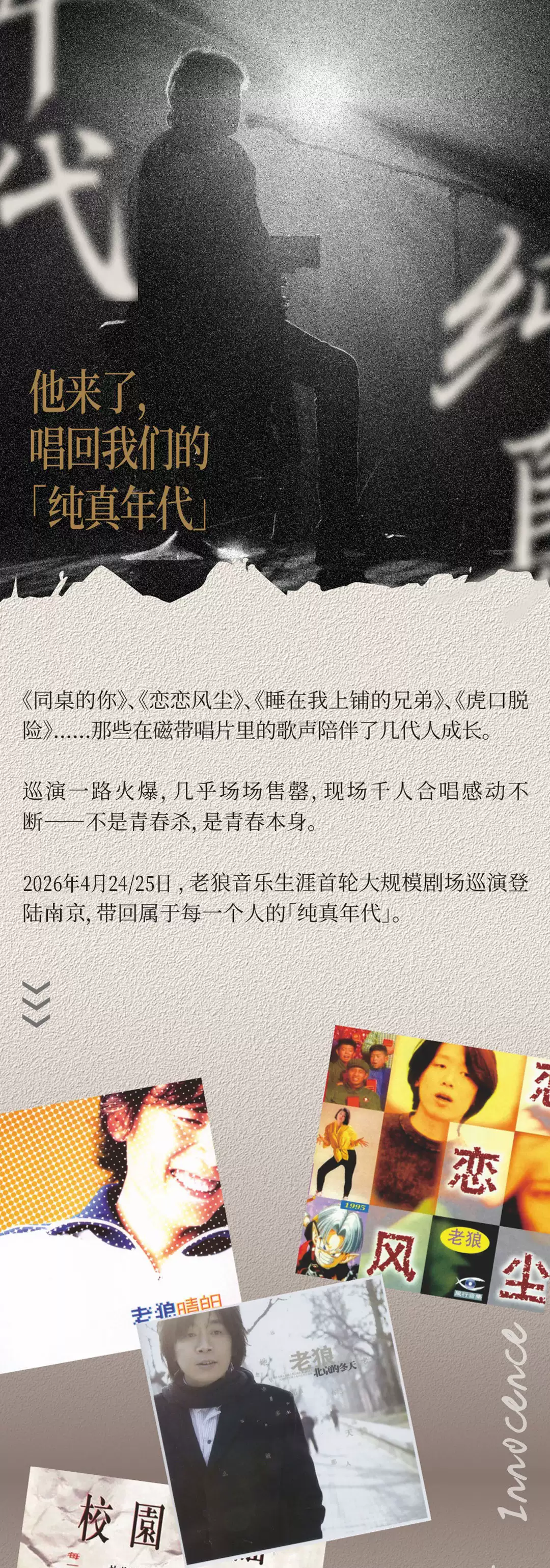 哇,终于等到这一刻!好多朋友都在问老狼南京演唱会到底啥时候开票,这期待值简直拉满了。校园民谣的旋律一响,谁懂啊,那些年的青春瞬间就回来了,大家早就蹲住准备冲一波现场啦。