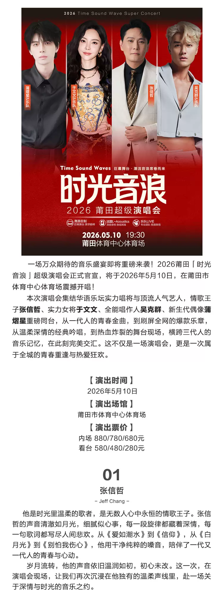 张信哲/吴克群/于文文/蒲熠星莆田演唱会2026最新(时间+地点+门票购票入口)